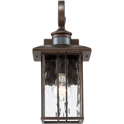 The oil-rubbed bronze finish gives this set of two Deaver motion sensor lantern outdoor wall lights by John Timberland® a warm and elegant personality. The clear water glass decorates the design with stunning character. With a motion sensor, this light turns on when it recognizes motion nearby, adding an element of safety to your home.