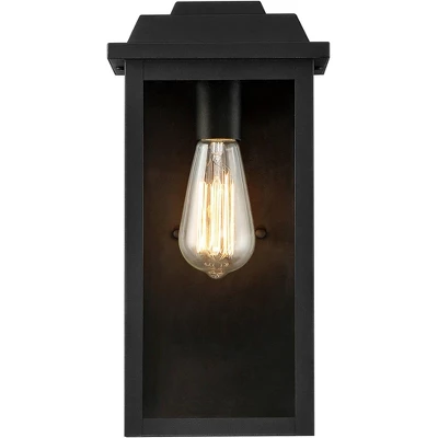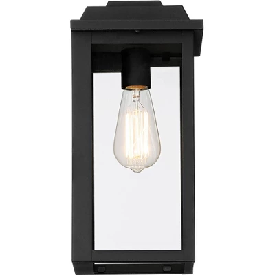 Update your home with this transitional outdoor wall light from the Eastcrest collection by John Timberland. Featuring clean, straight lines and an unassuming rectangular silhouette, it fits into any style or setting. The frame is constructed from steel and painted over in a textured black finish, with clear glass panels supporting throughout. Perfect for a porch, patio, or garage.