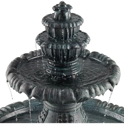 - Traditional four-tier garden fountain. From the John Timberland brand. Use in an outdoor patio or seating area, or as a water feature and focal point for a lawn or garden space.