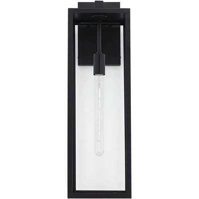 - Mystic black finish frame and backplate. Clear glass allows the bulb to be seen.