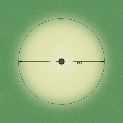 - 68″ high overall. Base and top light are 13″ wide. Produces a 50 foot circle of light. Plug-in light with a 10-foot long cord. Weighs 13.5 lbs.